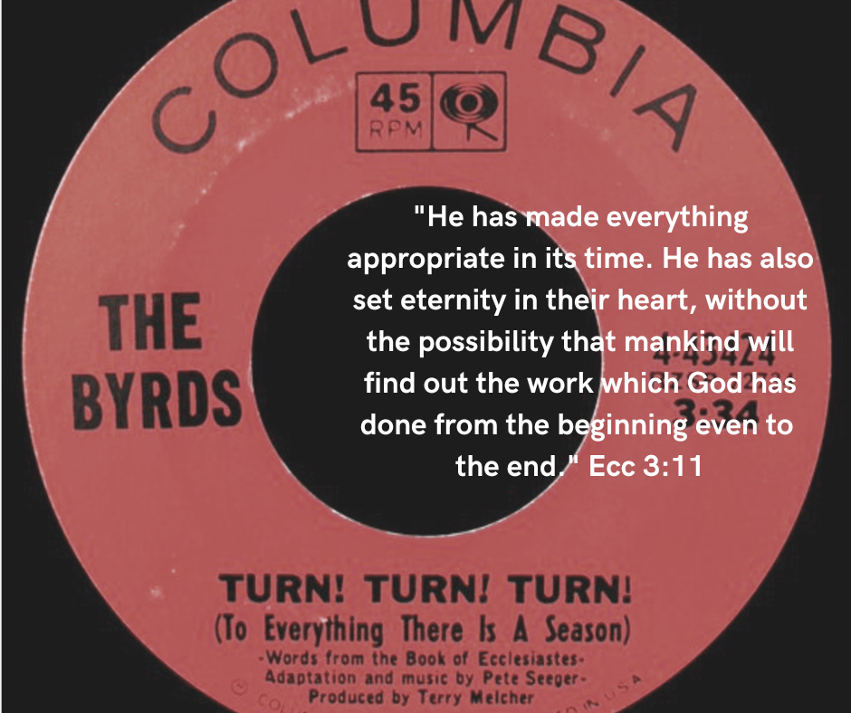 In 1965 the music crowd was charmed by a single released by The Byrds entitled “Turn, Turn, Turn.” It reached number 1 on the U.S. billboard. Written by Pete Seeger in the late 1950s, the song reached its full potential much later. Many folks were in awe of the lyrics and found them consistent withContinue reading “Timing is Everything”
